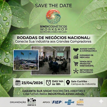 O objetivo deste evento é fortalecer a competitividade das indústrias fabricantes de Produtos Cosméticos, de Perfumaria e de Higiene Pessoal do Paraná, conectando conteúdo técnico e oportunidades reais de negócios em um único dia.
